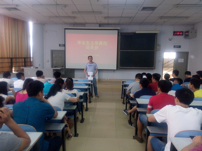 6171100,学校在教三楼201召开2015届毕业文明离校动员会,此次活动由我校文明办主办,电气信息工程学院承办。学院党总支副书记宋文军老师、全体专职辅导员、本科和研究生所有学生干部和党员参加了动员会。