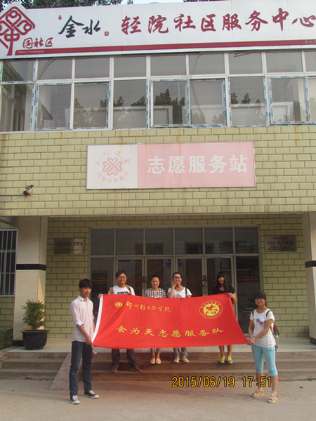 2015619日下午,我校食为天志愿服务队联合郑州市金水区东风路街道办事处文明使者志愿服务站,在轻院社区举办了以端午美进社区为主题的志愿服务活动。此次志愿服务活动由我校文明办主办,食品与生物工程学院承办。