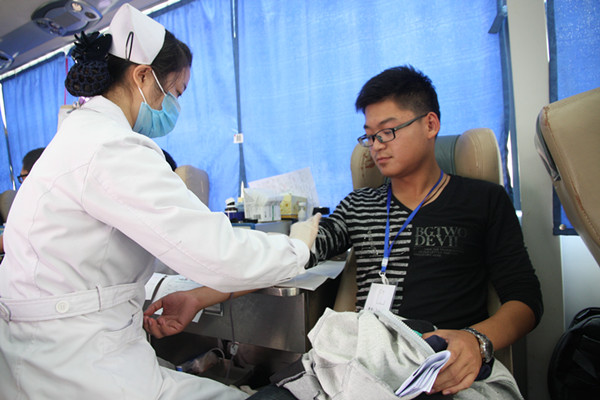 10月24日上午,由我校校团委、校文明办联合主办,青年志愿者协会承办的“无偿献血,心心相连”活动在科学校区三教楼前成功举办。本次活动的采血单位为河南省红十字血液中心。