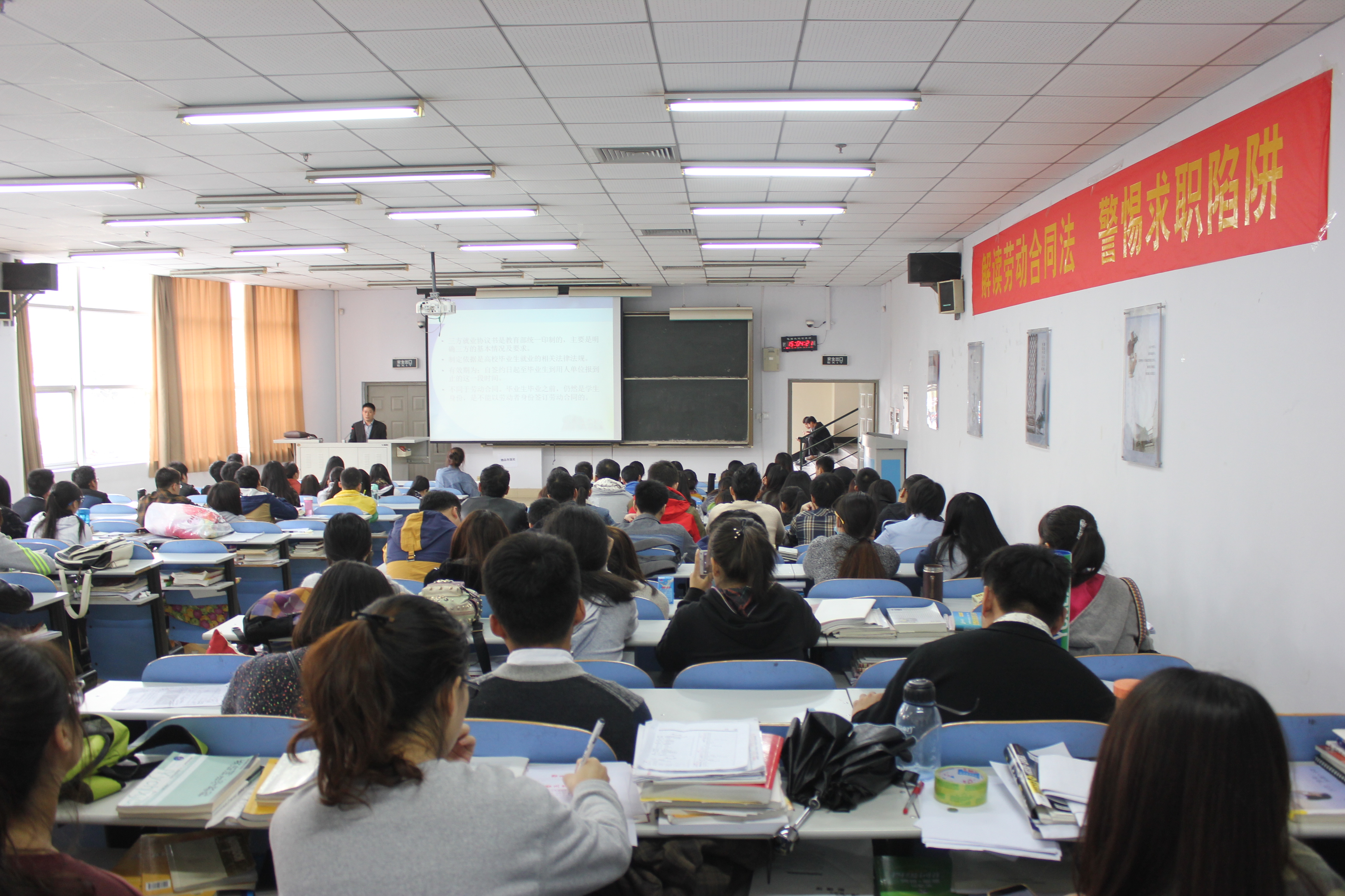 为了引导毕业生更好地择业、就业,学会有效地维护自己的合法权益。10月22日和29日下午分别在科学校区三教楼108室和东风校区教三楼101室举办了“解读劳动合同法 警惕求职陷阱”专题讲座。政法学院万广军教授应邀做专题讲座,400多名毕业生聆听了此次讲座。