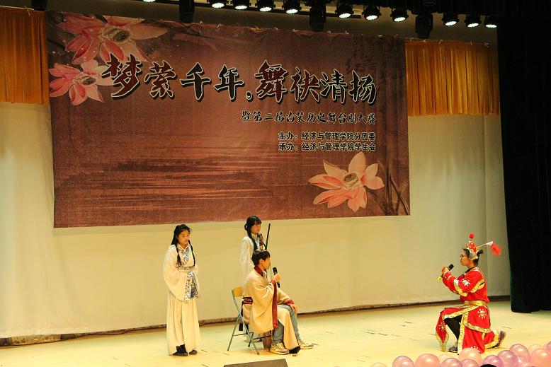 为弘扬中华民族优秀传统文化,再现经典历史故事,丰富校园文化生活,提升当代大学生的综合素质。12月20日晚7:00,经济与管理学院积极响应校文明办号召,在科学校区三教楼208举办了第二届古装历史舞台剧大赛。学校部分新生共550余人观看了比赛。