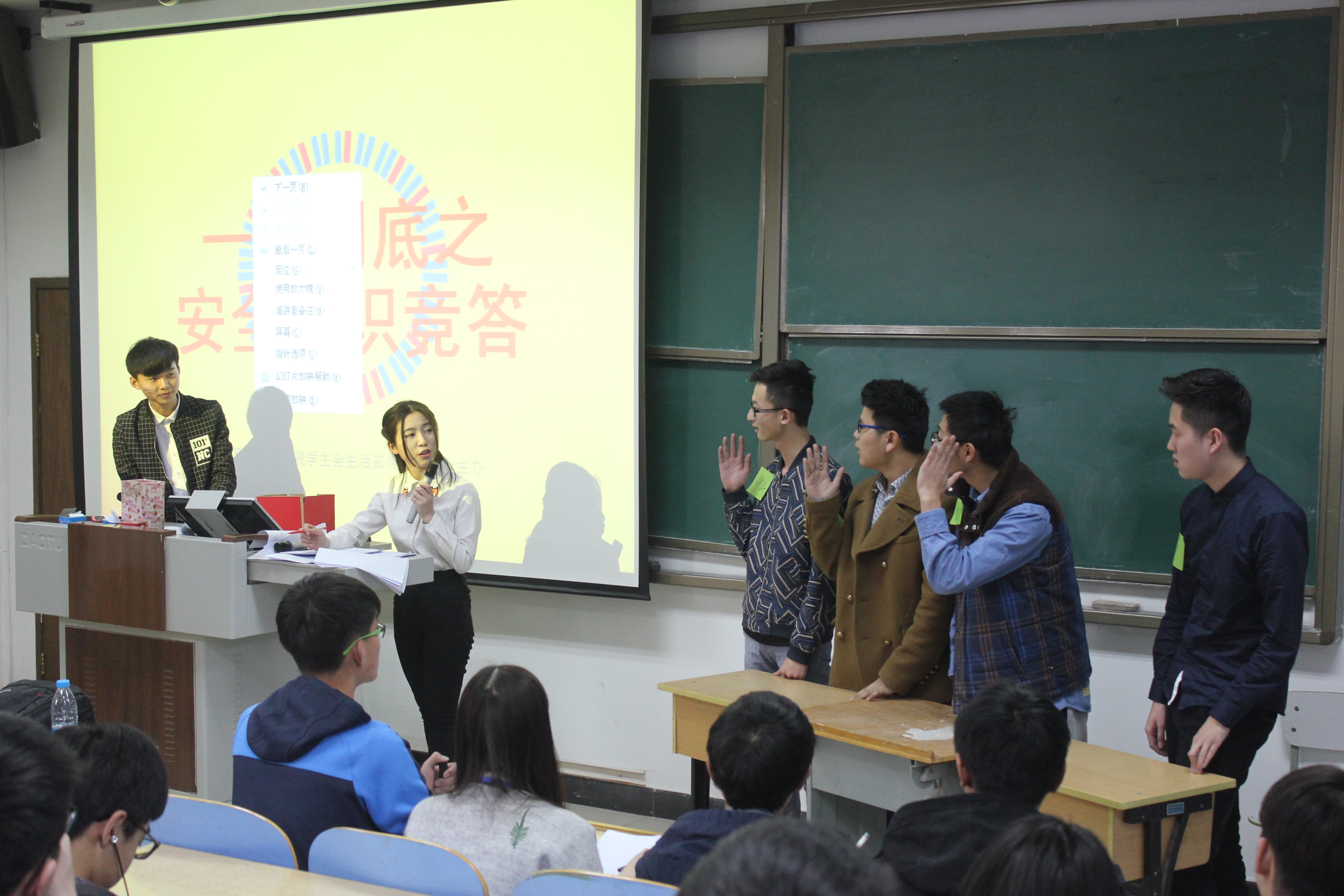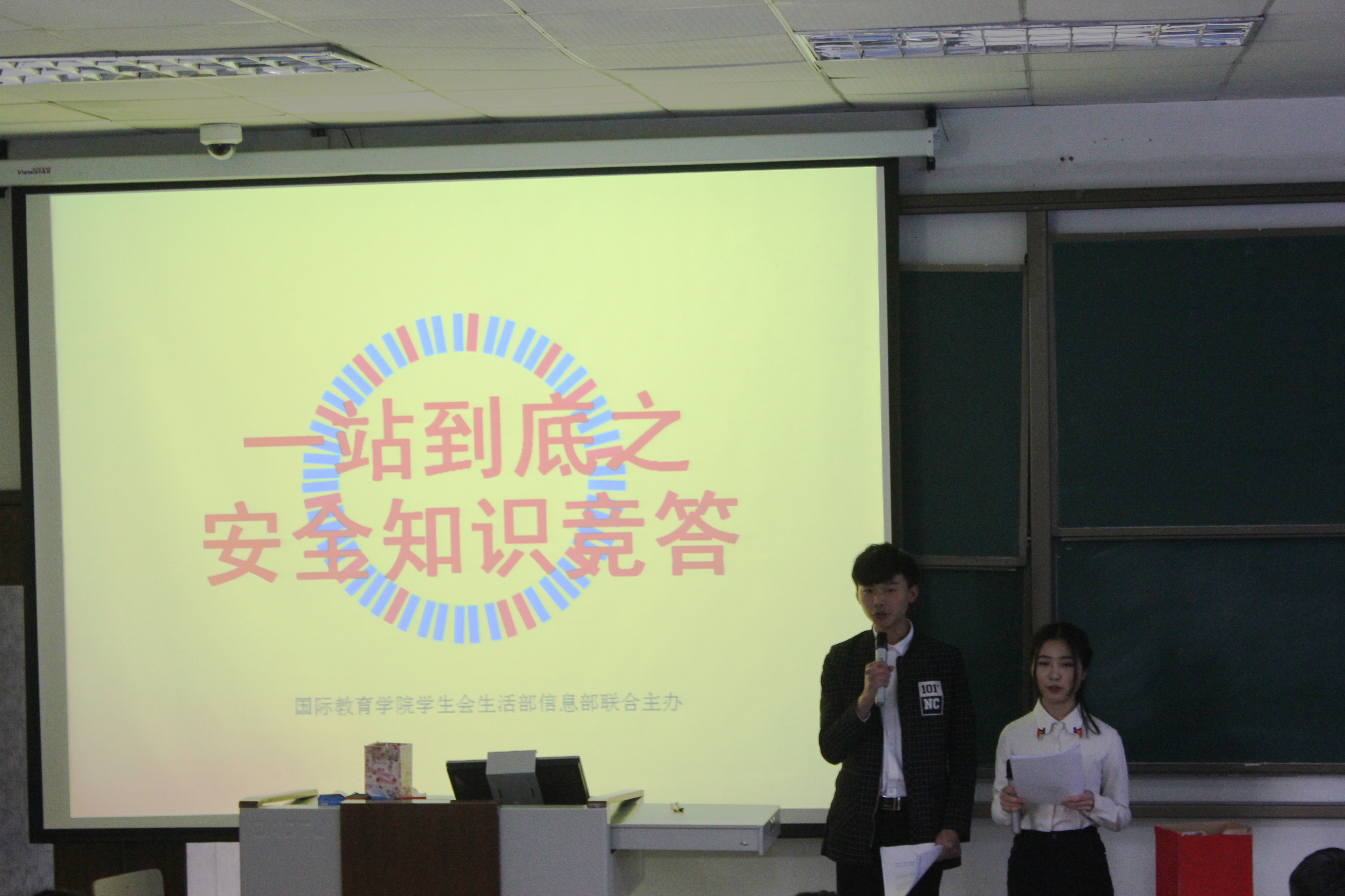 327日中午12:30,在教二楼229,学校成功举办了以安全常识为主题的一站到底安全知识竞答活动。此次活动由我校文明办主办,国际教育学院承办。