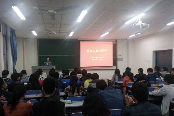 4月6日晚6点,学校在科学校区一教楼407室开展“青春与廉洁同行”为主题的廉政教育会议。此次活动由我校文明办主办,计算机与通信工程学院(电子信息工程学院)承办,学院学生支部书记司丽娜老师、党员发展对象、党员代表参加此次活动。