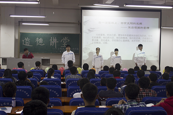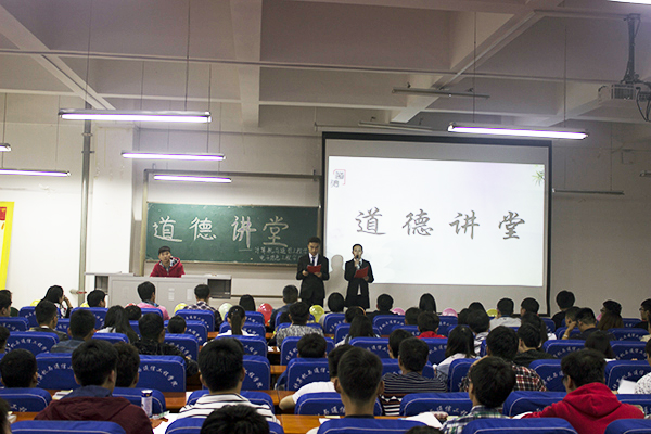 4月10日晚,学校在计算机楼217举行举办第三期“道德讲堂”活动,以“走进‘道德讲堂’,传递正能量”为主题。此次活动由我校文明办主办,计算机与通信工程学院(电子信息工程学院)承办,学院200余名师生代表参加活动。