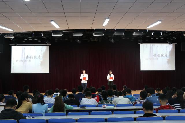 诗韵飘香,情寄翰墨。2016年4月16日下午,由校团委、校文明办联合主办,校学生会承办的诗词知识大赛在我校科学校区拉开帷幕。校学生会、轻院青年编辑部、驼铃文学社、读书协会和书法协会共五支代表队参加比赛,近三百学生观看比赛。