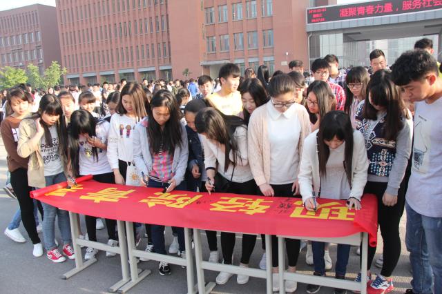 升旗仪式结束后,学院在五星红旗下组织进行了“弘扬五四爱国精神,展现轻院青春风采”横幅签名活动。同学们纷纷拿起签字笔,郑重地在横幅上写下自己的名字,表达着对祖国无限的热爱。