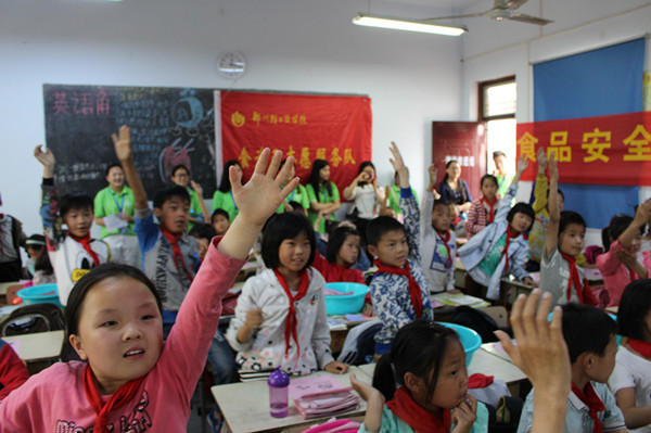 目前,处于低收入阶层的农村消费者中,年轻人大多外出打工,留守老人和儿童较多,因为他们食品安全意识淡薄,生活消费观念陈旧,考虑最多的是价格是否“便宜”,而对小食品的质量安全状况全然不知或知之甚少,这在无形中为假劣食品大量流入农村市场提供了有利空间,也给孩子们的健康成长留下了严重隐患。本次志愿服务活动以食品安全知识多媒体课堂、科学小实验、食品知识展板、宣传条幅、宣传彩页等丰富多彩的形式和载体展开。食品安全知识多媒体课堂上,志愿者们生动的讲解帮助小学生们了解早餐应该如何搭配、识别十大垃圾食品和了解街边小吃的秘密等食品安全知识;趣味科学小实验中,带领他们探索神奇的食品世界,体会科学的奥妙和魅力;互动游戏环节,志愿者们带领小朋友们一起制作水果拼盘,想象力、动手能力齐开发,现场氛围温馨愉悦。