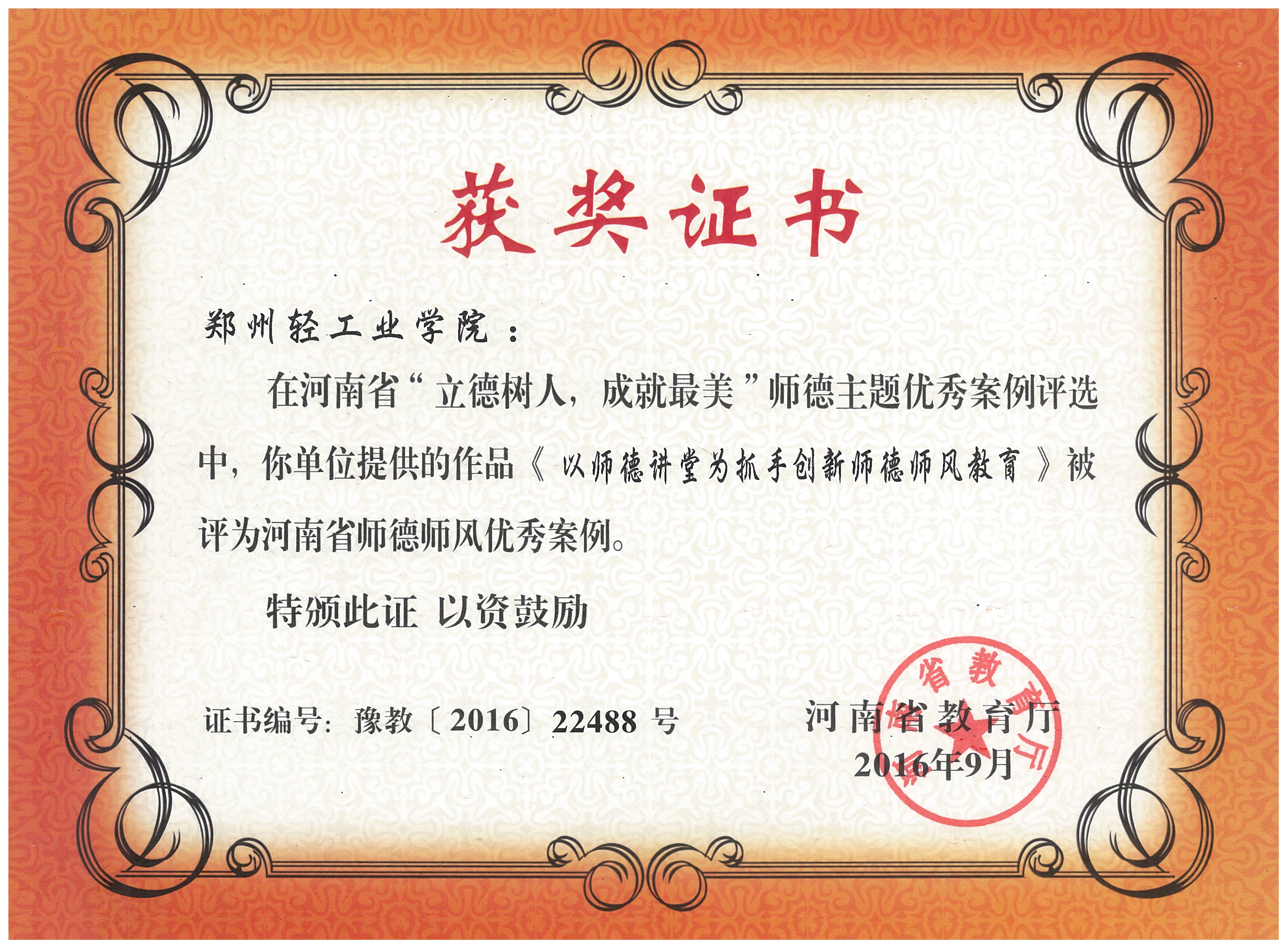 师德案例及征文获奖证书