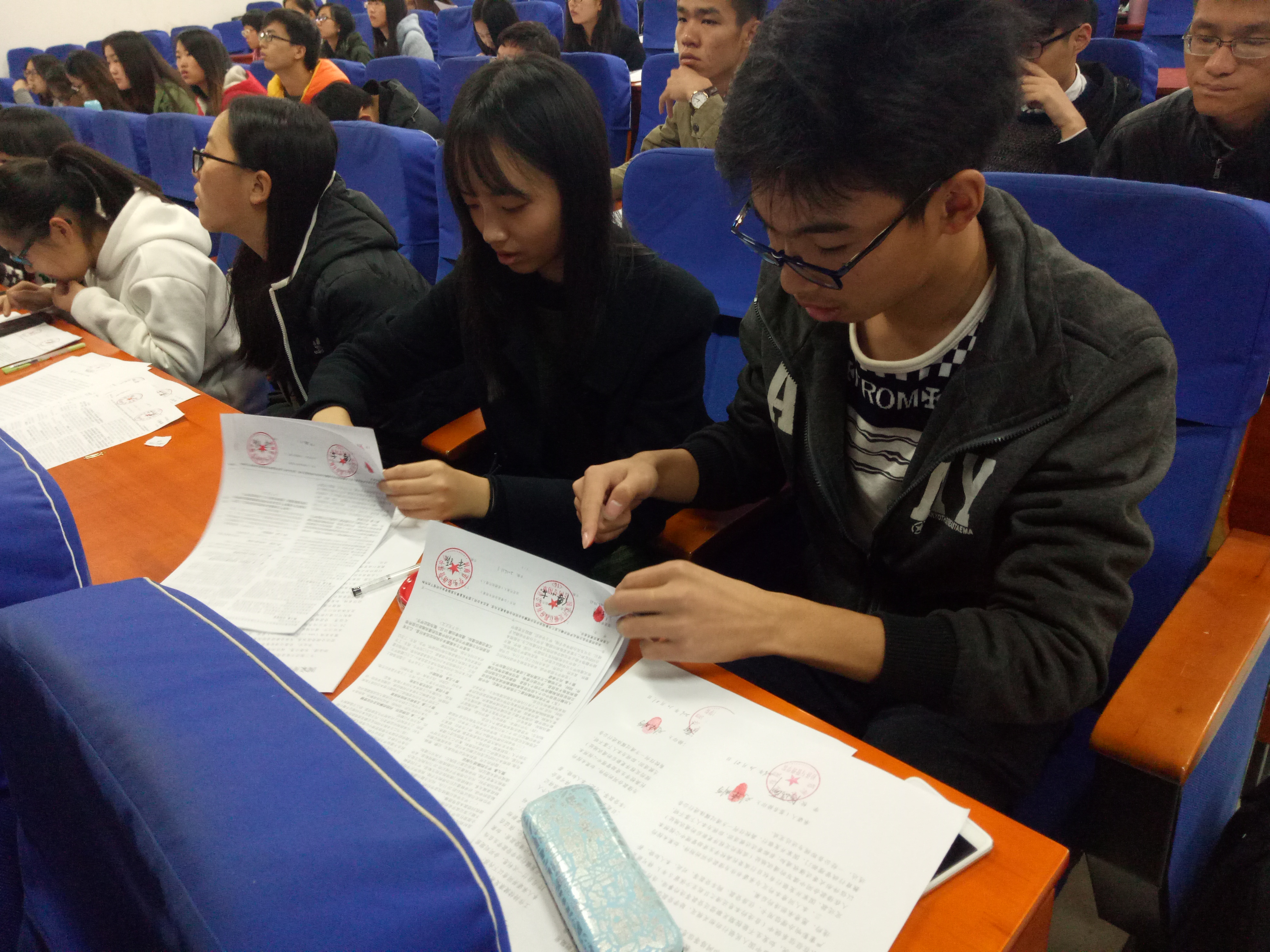 为保证我院校内助学贷款工作顺利进行,同时教育广大学生诚信做人,经济与管理学院于2016年11月7日在经管楼211召开2016年度国家助学贷款合同签订暨诚信教育大会,负责贷款的老师及全体贷款学生参加了此次会议。