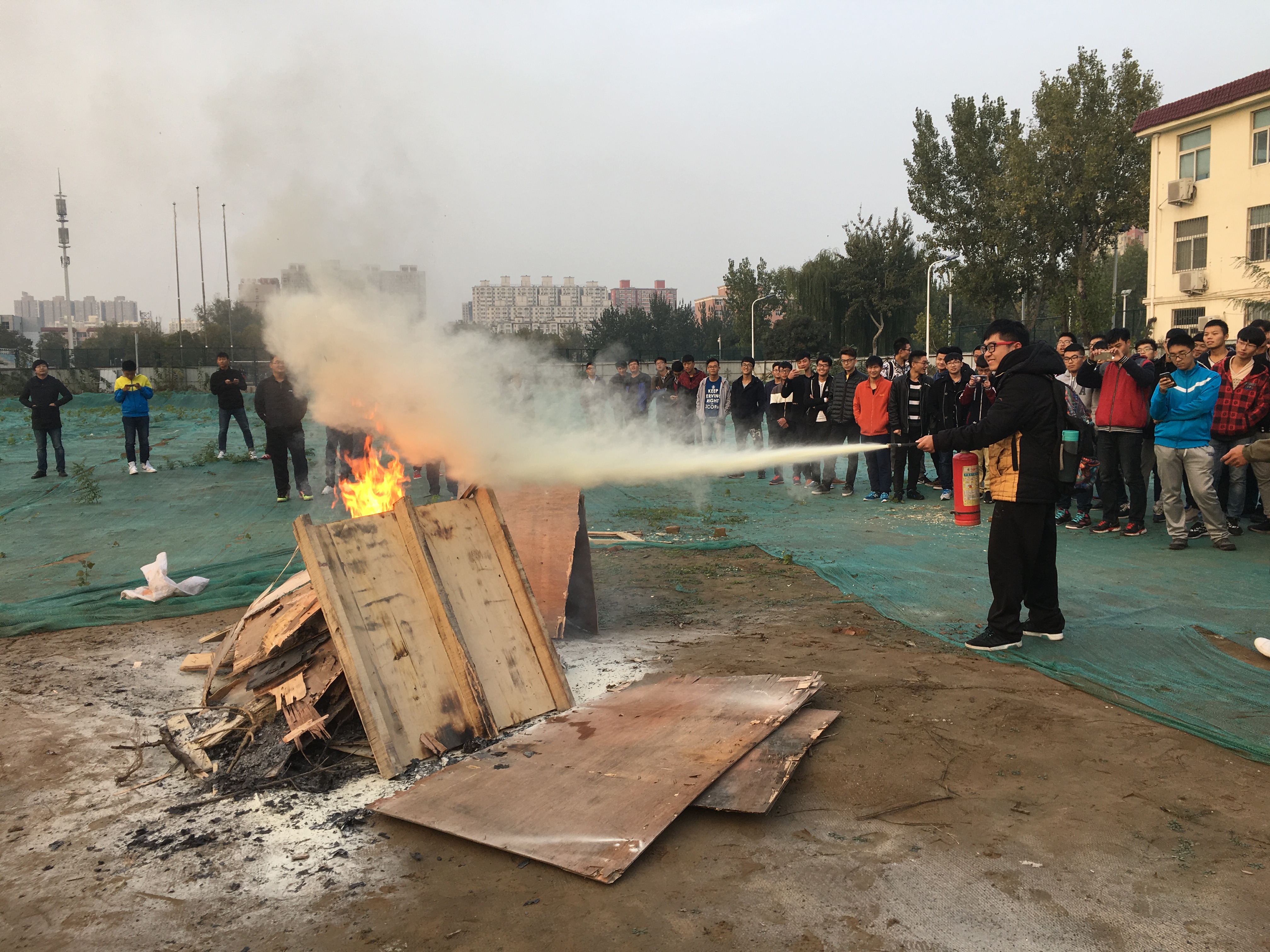 下午校保卫处老师、建筑环境工程学院安全工程博士教师向同学们开展了消防知识和技巧的教育。老师向全体同学详细讲解了灭火器具的使用方法、技巧并演示了干粉灭火器的使用方法及操作程序。各学院学生代表参加了灭火演练,模拟如何应对突发事情,熟练掌握灭火器的使用方法。