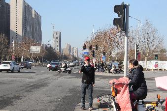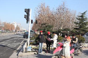 上午,在郑州交巡警二大队保通中队交警的指导下,学校党员志愿者们头戴小红帽,手持小红旗,在科学大道与瑞达路交叉口开展文明交通志愿服务,纠正不文明交通行为,宣传普及交通法规常识。活动过程中,一部分志愿者们指挥着来往行人及自行车、电动车,帮助他们安全、有序、快速的通过路口。另一部分志愿者则在路边给过往行人发放“珍爱生命,文明出行”宣传页,宣传《道路交通安全法》,讲解文明出行的重要性,帮助市民树立交通安全意识。