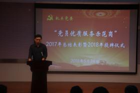 机关党委委员、校党委组织部部长杨新宇宣读机关党委《关于表彰2017年“党员优质服务示范岗”党员的决定》。科技处党支部的田二林、招生办公室党支部的徐进、人事处党支部的荆晓艳、党委组织部统战部党支部的方娜等四位同志先后作交流发言。机关党委副书记王海燕宣读《机关党委2018年“党员优质服务示范岗”创建活动方案》及2018年示范岗党员名单。