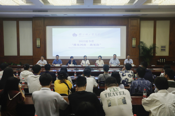 7月2日,学校2023年”豫见河南·遇见你”夏令营开营仪式在科学校区双创中心第一会议室举行。河南省教育厅对外合作与交流处处长王华星、副校长白艳红出席开营仪式,我校国际合作与交流处及相关部门负责同志,韩国釜庆大学、香港岭南大学、香港高等教育科技学院、香港科技专上书院四所高校的15名学生和我校学生志愿者等参加了开营仪式。