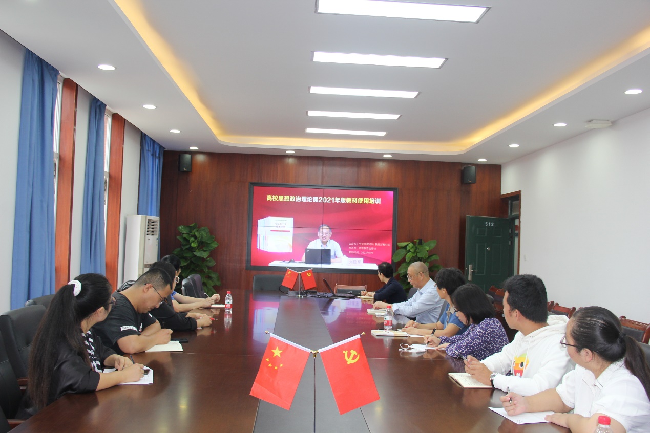 按照教育部《关于做好高校思想政治理论课2021年版教材使用培训的通知》要求,9月27日上午,马克思主义学院原理教研室全体专兼职教师在科学校区政法大楼512会议室参加了“高校思想政治理论课2021年版教材使用在线培训”。