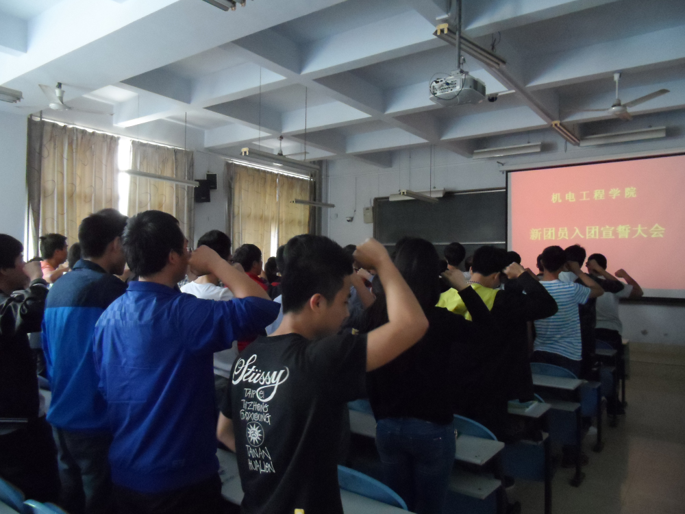 为纪念“五四”爱国运动95周年、共青团建团92周年,同时积极为团组织注入新鲜血液,4月24日中午12:10,在教三楼108教室,机电工程学院部分新团员面对团旗庄严宣誓,志愿加入共青团,并立志为实现中国梦贡献青春力量!