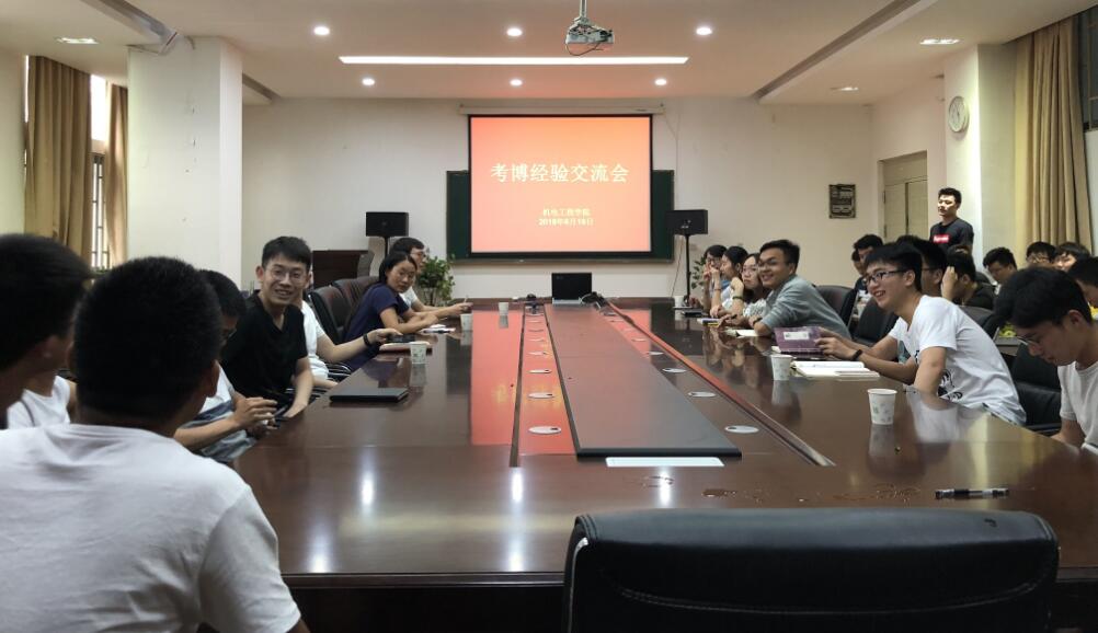 为激发同学们考博的热情,鼓励同学们继续深造,2018年6月19日下午5:30,机电工程学院在西三楼215会议室举办了考博经验交流会,此次会议由机电工程学院研究生辅导员谢欢老师主持,会议邀请了我院2018年考博成功的硕士毕业生代表,全体2016级和2017级研究生参加了此次交流会。