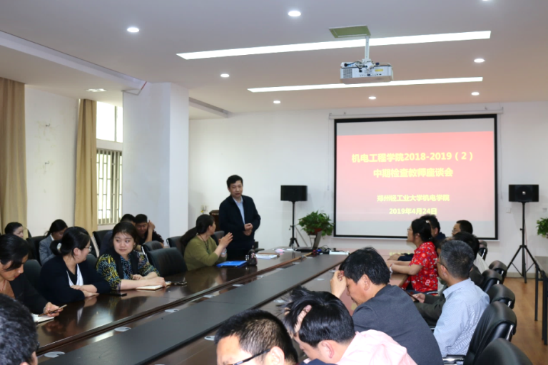 2019年4月24日下午,机电工程学院在东风校区西三楼215会议室召开了期中教学检查教师座谈会。何文斌副院长、各专业负责人、教学督导组成员及30多名骨干教师代表参加了此次会议,何院长主持了此次会议。