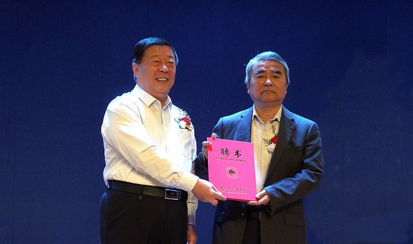 校长赵卫东为谭建荣院士颁发“双聘院士”聘书