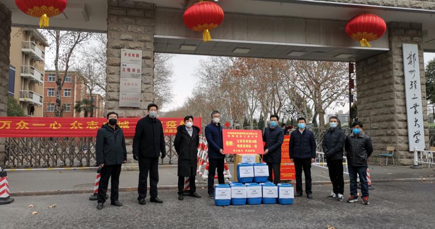2020年3月2日上午,河南瑞泰物联网科技有限公司总经理金光、副总经理郭涛一行,来到18新利直播 东风校区,满怀深情地向我校捐赠防疫物资,携手学校防控疫情。捐赠仪式在东风校区北门举行。校后勤服务中心总经理吕晶,东风校区综合服务中心主任卢中宁,机电工程学院党委书记刘国豪,机电工程学院教师张德海教授等参加了捐赠仪式。捐赠仪式由刘国豪主持。