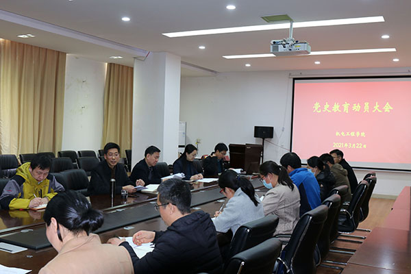 3月22日,机电工程学院在西三楼215会议室召开党史学习教育动员会,学院领导班子成员、党支部书记等院党史学习教育领导小组成员参加会议。会议由党委书记刘国豪主持。