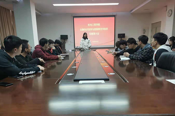 为倡导在校大学生理智消费,避免陷入高额贷款陷阱,2021年4月2日,机电工程学院在西三楼215召开金融知识宣传与校园网贷风险防范教育大会,学院贷款工作负责老师李灏萱和班级学生干部参加了此次大会。
