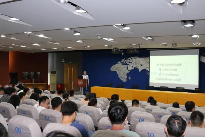 2021年5月31日,工程教育认证专家、天津大学胡绳荪教授应机电工程学院邀请,在东风校区图书馆学术报告厅做了题为“把握认证主线,不断持续改进”的工程认证专题报告,报告会由教务处副处长邢培旭主持,机电工程学院专业负责人及骨干教师三十余人参加了此次报告会。报告会上,胡绳荪教授从“工程认证的主线和底线”“专业的持续改进”“关注项的持续改进”以及“内部评价机制的持续改进”四个方面展开讲述,报告深入浅出,具有很强的指导性、针对性和可操作性。会后,参会教师们积极发言提问,胡绳荪教授给予了认真解答。