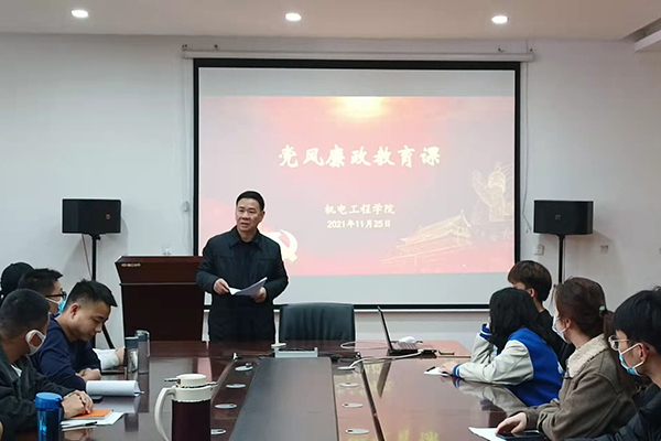 为深入学习十九届六中全会精神,持续推进党史学习教育走深走实,11月25日,机电工程学院罗国富院长为学生党员上了一堂生动的党风廉政教育课。