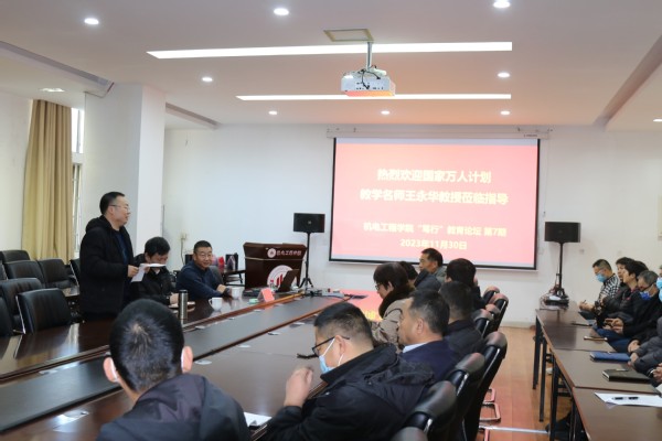 2023年11月30日下午15:00—17:00,机电工程学院“笃行”教育论坛第七期在西三楼215会议室举行,国家万人计划教学名师王永华教授做“如何成为一名优秀的高校教师”的报告。王永华,1963年10月出生,我校电气信息工程学院二级教授、国家“万人计划”领军人才(教学名师)、“智汇郑州”首批国家级领军人才、河南省高层次(B类)人才、全国工业过程测量和控制标准化技术委员会(SAC/TC124 SC4)委员、中国PROFIBUS协会(CPA)委员、中国PLCopen组织委员。