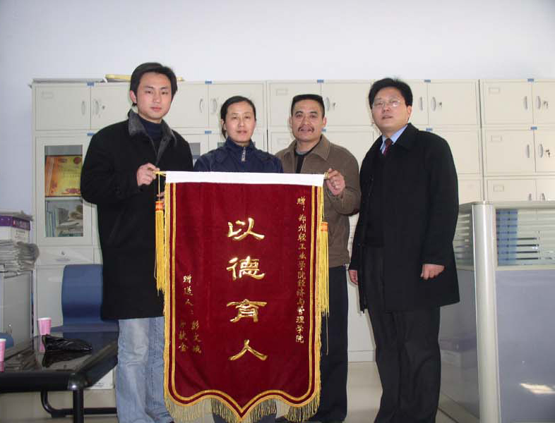 在2006年寒假期间,我校经济与管理学院张亚同学途经商丘市南湖时,突然发现了一名落水儿童,在情况危机时刻,张亚同学将个人安危置之度外,挺身而出,跳入冰冷的湖水中,奋力将该名落水儿童救出。 为表彰先进,弘扬正气,倡导见义勇为,3月2日下午3:00,我校经管学院在学校大礼堂隆重授予张亚同学“见义勇为标兵”荣誉称号。在表彰大会上,落水儿童家长彭文娥、方献金介绍了张亚同学救人的感人事迹,并向我校经管学院敬献了“以德育人”的锦旗,以此表达她全家对我校培养出像张亚这样好学生的感激与敬意。