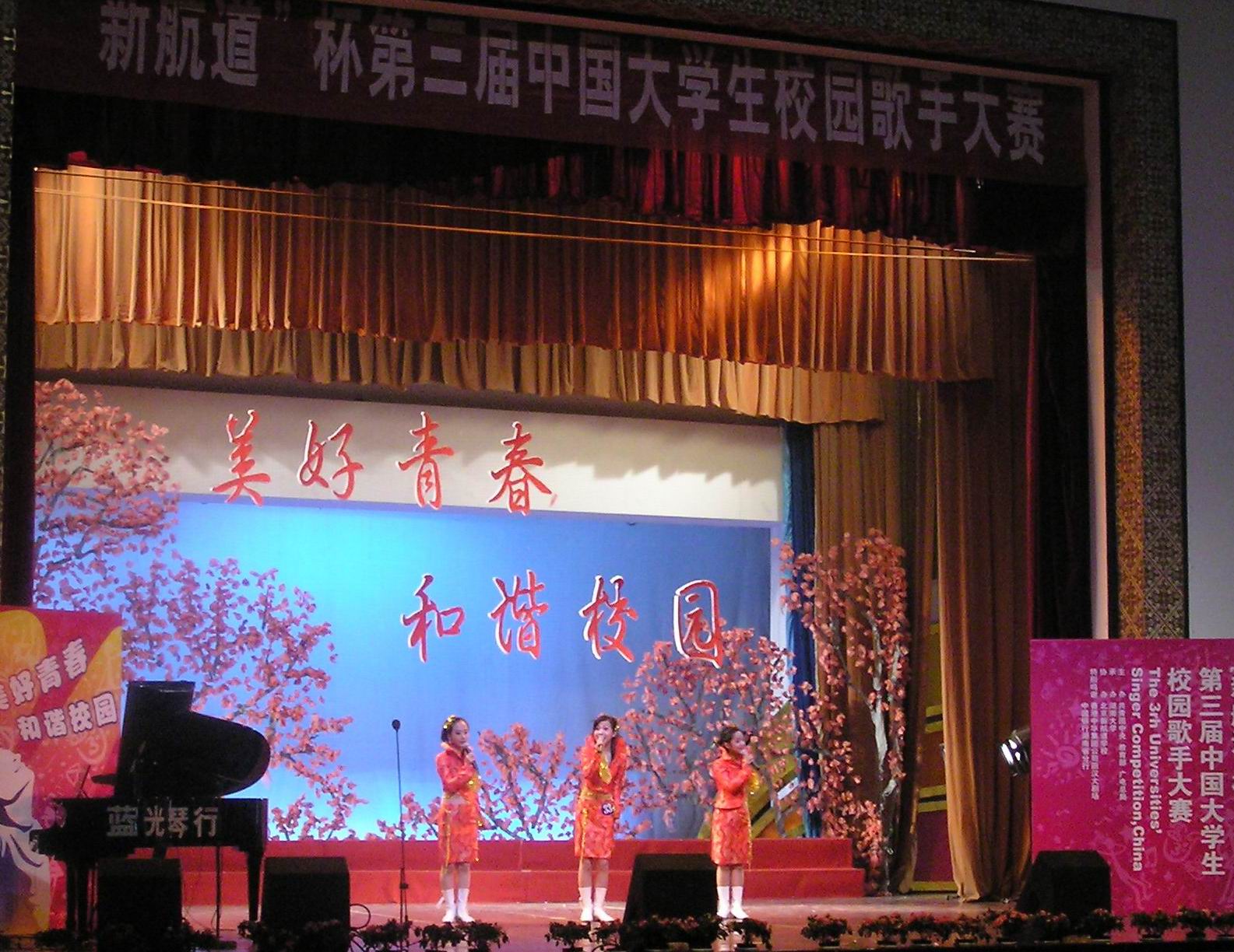 近日,由团中央、教育部、全国学联举办的“第三届中国校园歌手大赛”落下帷幕。中国大学生校园歌手大赛是我国最高级别的大学生艺术竞赛,分为校级发动、省级预赛、全国决赛三个阶段。在以往的两届比赛中,我校均获得了参赛资格。在本届比赛中,我校大学生艺术团红精灵歌组合(孙璇、赵攀、陈兴华)在全国百余所高校的114名选手中荣获业余组铜奖。