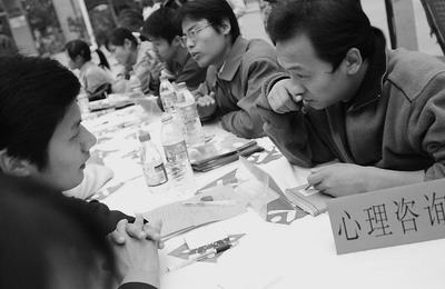 日前,我校心理健康教育中心、大学生心理协会在学生公寓二区举办了一次大型的现场心理咨询活动,约2000名大学生接受了我校及河南心理网的8名专业心理咨询师的心理咨询服务,心理专家现场解答学生的各种心理困惑及问题;许多同学进行了心理量表测试,自测情绪、气质、人际关系等心理特征,发现了存在的问题,提示学生有意识地调适和控制不良心理状态。