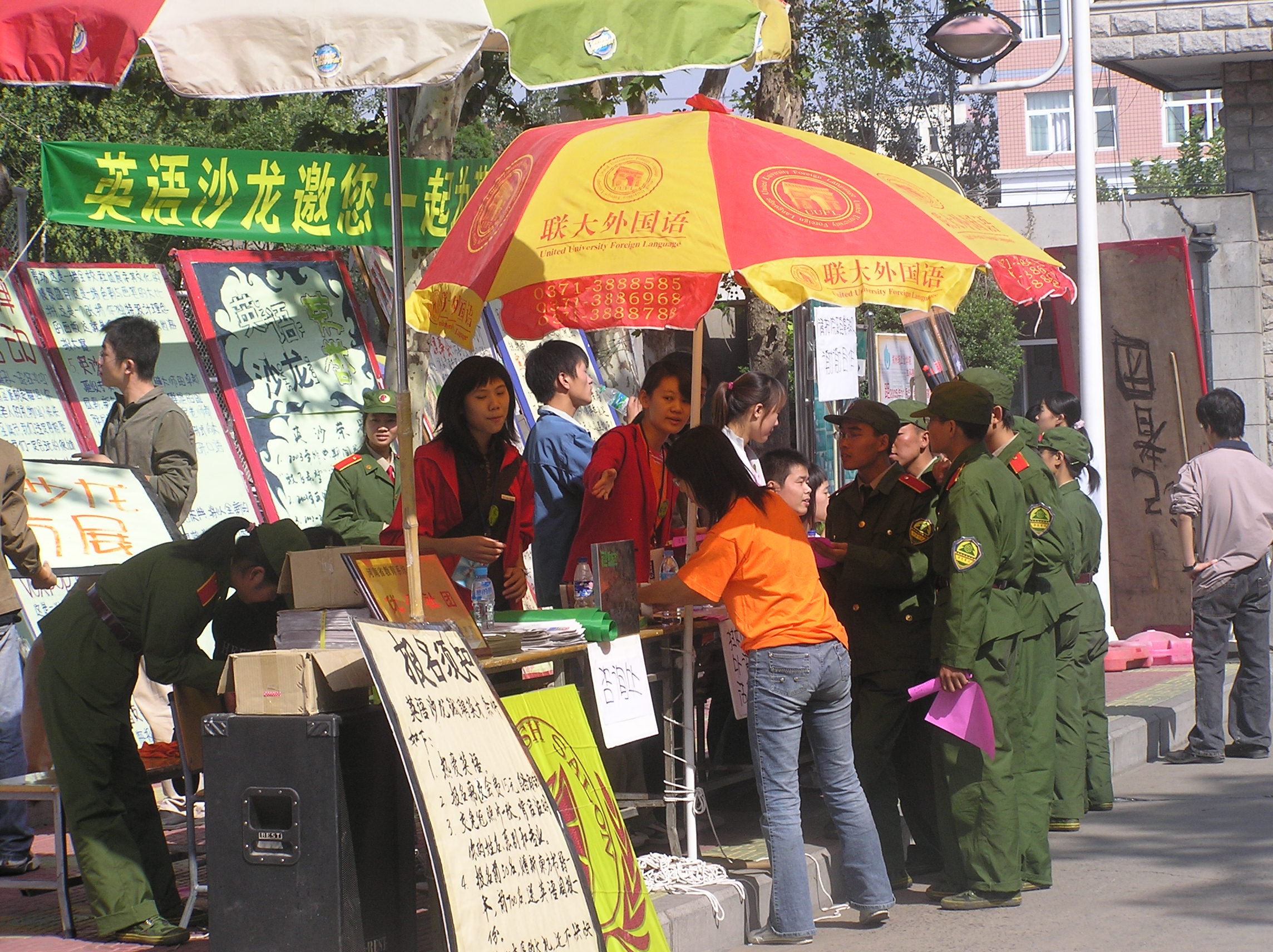 9月22日上午8:00,在我校学生社团指导管理委员会的统一组织下,各级各类学生社团在博学路两侧开始了本学年的招新工作,本次招新活动以“丰富校园文化 展现自我风采”为主题,吸引了许多大一的同学前来报名参加,现场气氛十分热烈,成为我校一道靓丽的风景线。