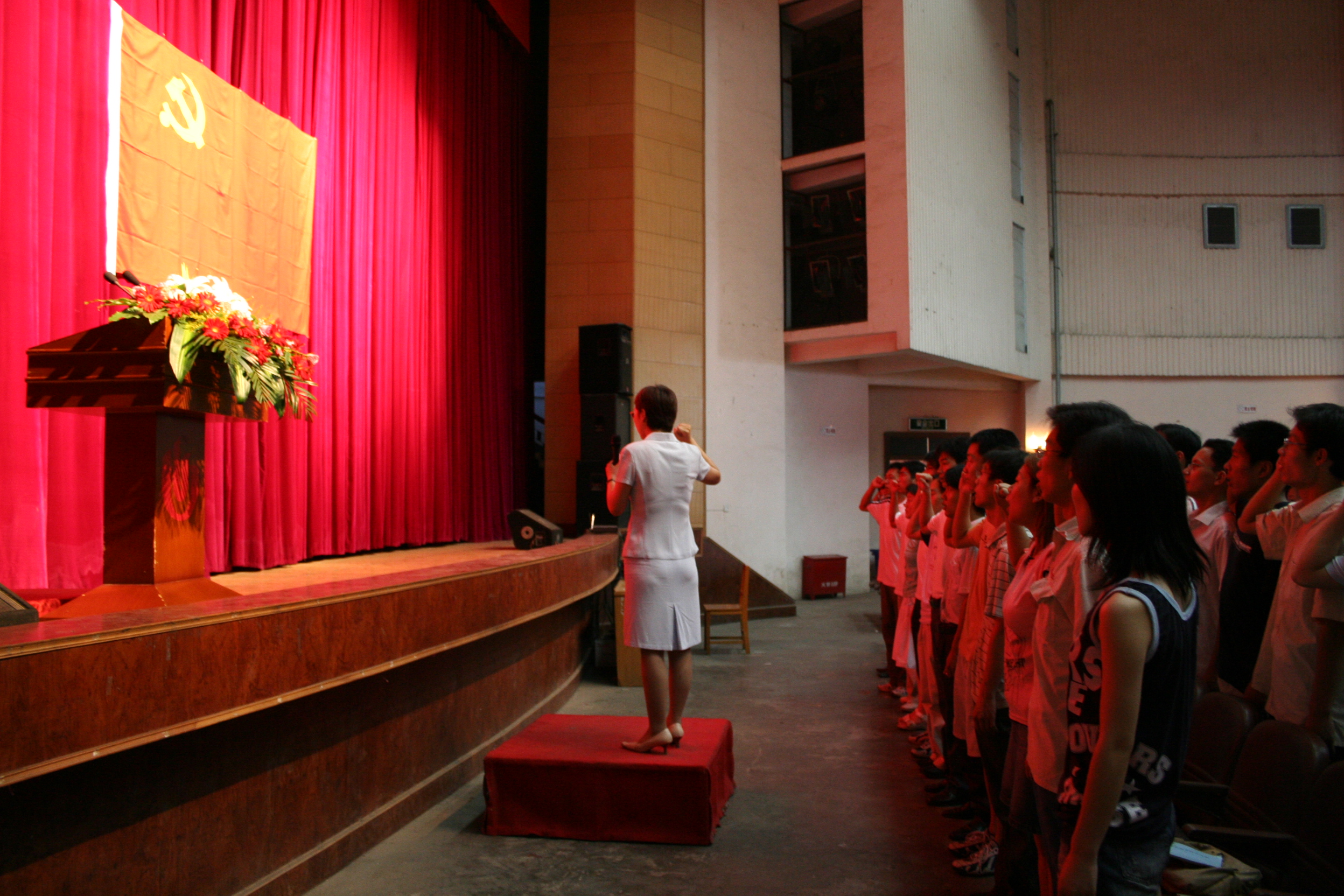 “我志愿加入中国共产党……”,6月23日上午,近千名新党员在我校大礼堂面向党旗,向党庄严宣誓,以铿锵誓言迎接党的第八十四个生日。校党委副书记张希凡同志、相关职能部门负责人、各院(系)党总支副书记、各学生党支部书记及1000余学生党员和积极分子参加大会。宣誓大会由党办主任王建生同志主持。