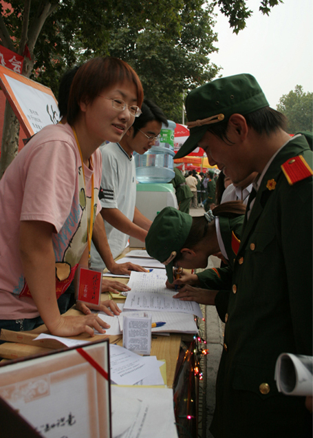 9月19日上午,我校各级各类学生社团开始了本学年的招新工作,本次招新活动以“丰富校园文化,展现自我风采”为主题,在招新现场,学生社团的同学们充分发挥聪明才智,多方面展示了轻院丰富多彩的校园文化,吸引了众多06级新生前来咨询报名,现场气氛十分热烈,成为我校一道亮丽的风景线。