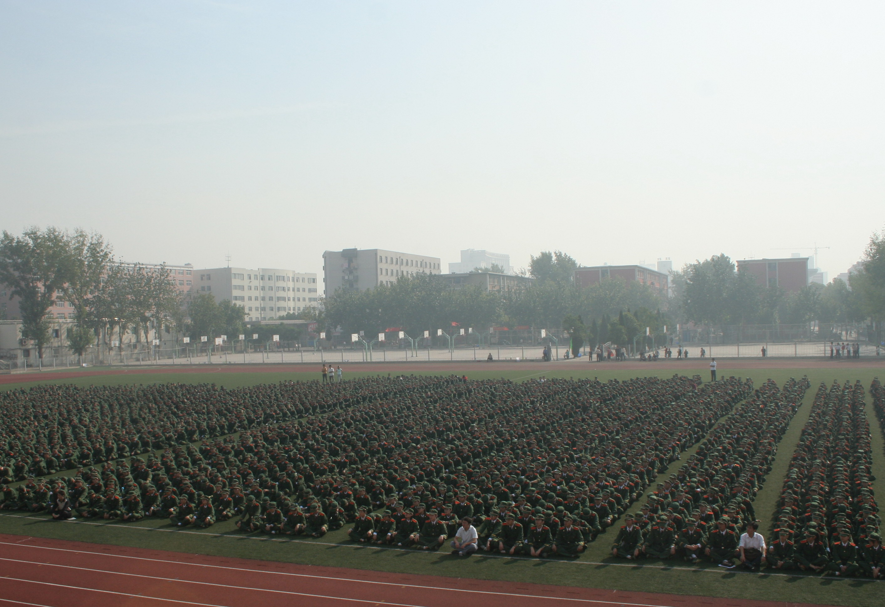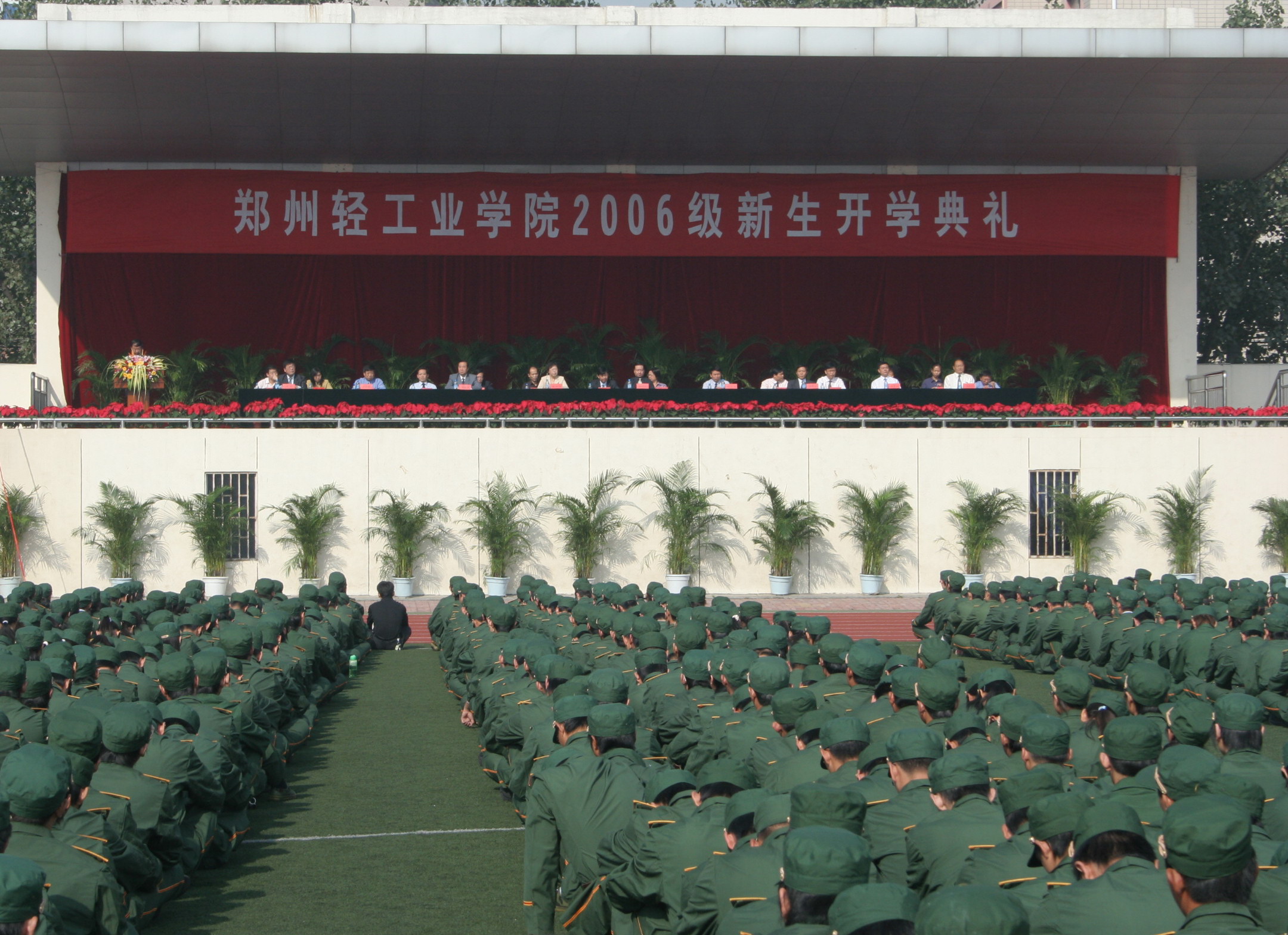 9月11日,我校2006级新生开学典礼在校体育场举行,5000余名2006级新生身着戎装上了入学以来的第一节课。