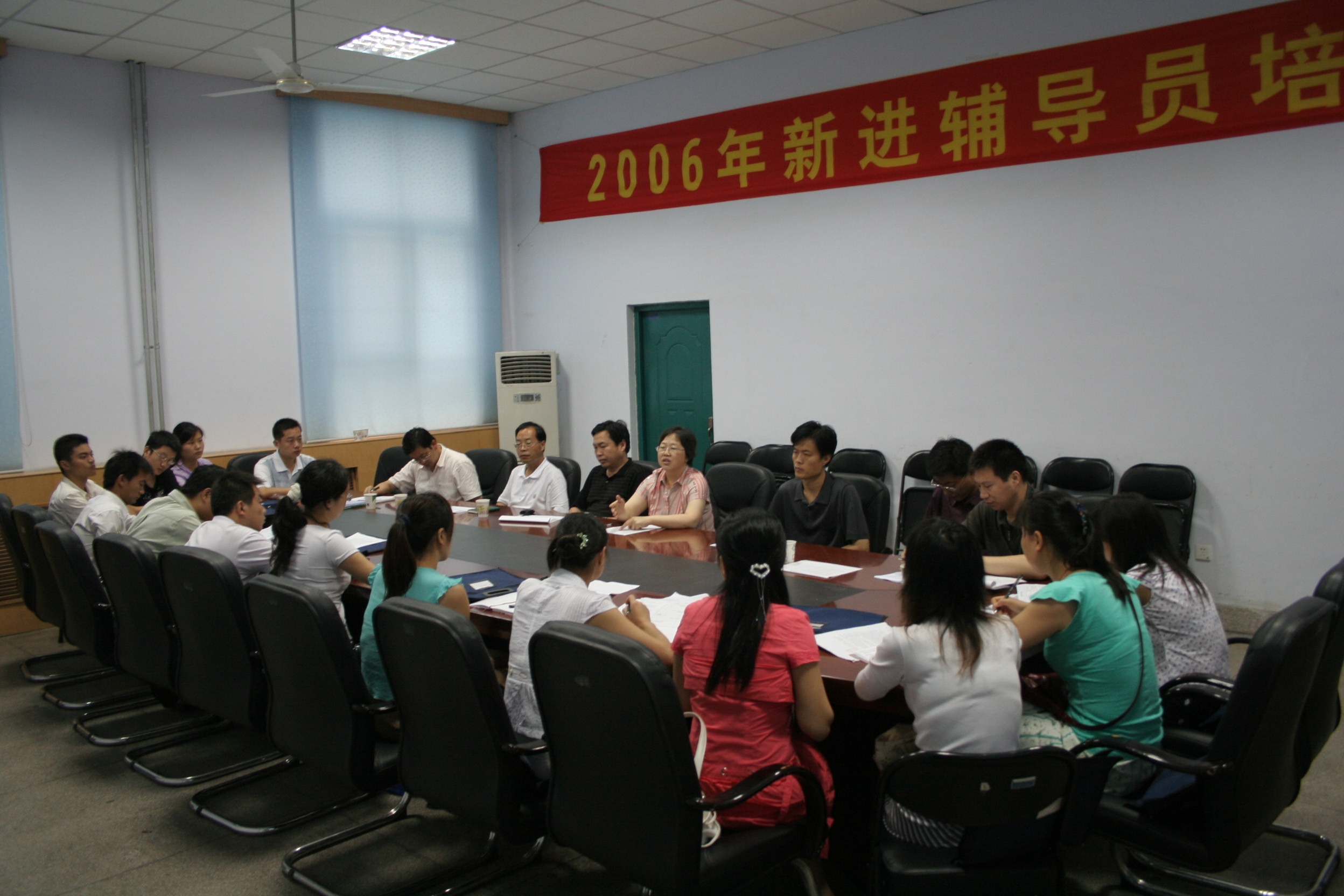 对新进辅导员的培训是我校辅导员培训规划中的重要组成部分,培训分为岗前培训和日常培训两大块,包括专家讲座、经验交流、座谈讨论、参观考察等内容。本次岗前培训聘请了校内学生工作专家举办了《努力实现三个贴近 做好一名优秀的学生思想政治教育工作者》、《以人为本 切实做好学生管理工作》、《高校共青团在大学生素质教育中的作用》、《辅导员工作特点与工作方法》等专题讲座,同时邀请部分专职辅导员参加了经验交流,组织学员们参观考察了我校德育教育基地。