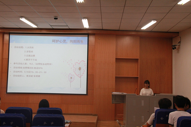 各项目负责人利用ppt从项目实施过程、参与人员构成以及活动效果展示等方面进行了汇报。汇报内容丰富,过程精彩纷呈,“请你借我一块钱”、“我想对自己说”等创意活动为其他蒲公英使者开阔了思路,提供了借鉴;有些项目注重形成集中效应,如围绕母亲节通过“母亲,感谢一路有你”、“爱要说出来”、“母爱无疆”等系列活动强化感恩意识、传递温暖亲情,得到了广泛好评。心理健康教育中心指导老师对项目进行了点评,同时提出了提升和改进意见,鼓励蒲公英使者大胆创意尝试,力求策划出更多更有意义的活动。