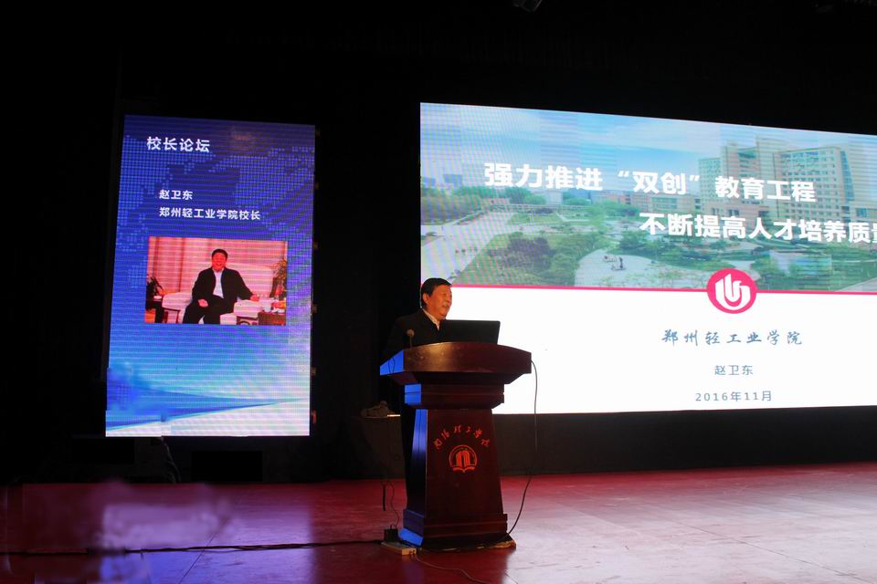 我校赵卫东校长特邀在校长论坛上做了题为《强力推进“双创”教育工程,不断提高人才培养质量》的专题演讲。赵校长从“双创”是党和国家的重大战略决策、“双创”教育是高等教育的应有之意、“双创”是实施创新驱动发展战略的根本举措三方面阐述了高校创新创业教育的重要性和深远意义;从“围绕一个目标、把握四个关键、实施八项工程”介绍了我校创新创业教育改革的思路与举措;最后,从“学科竞赛”、“学生创新创业典型”、“就业质量”三方面介绍了我校创新创业教育改革取得的初步成效。