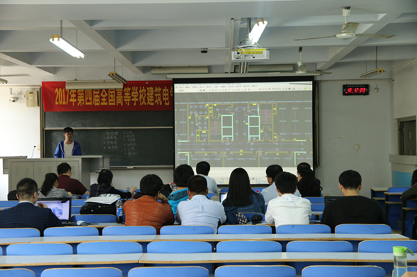 与会专家只用了一个小时用餐,下午一点十分开始了毕业设计中期汇报会,各校与会老师全程参加了中期汇报会,我校5名学生参与了4个课题的汇报。我校建筑电气与智能化专业部分青年教师和学生旁听了汇报会。