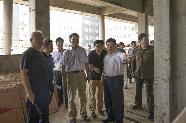 7月17日下午,党委书记石恒真,校长赵卫东,党委副书记尚宝平、马英,副校长刘新田、毛多斌、王新杰、方少明,工会主席李世瑛到禹州校区检查指导工作并慰问奋战在禹州校区建设工地的干部职工和施工人员。