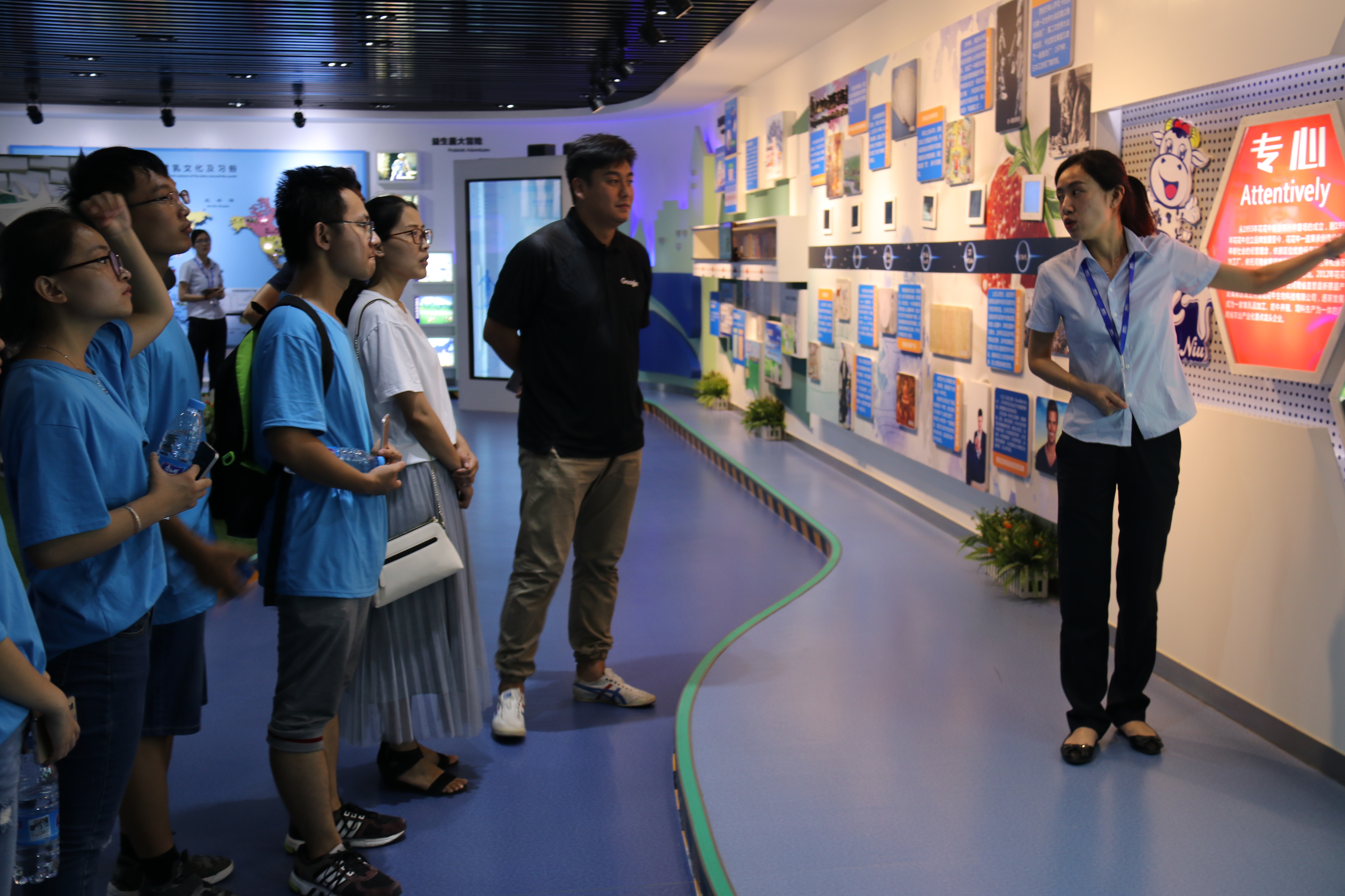 7月11日,队员们到达马寨食品工业园区,参观了郑州顶益食品公司的生产车间,了解了食品加工机器的生产步骤。随后,小分队去了花花牛生物科技有限公司,在老师带领下参观了花花牛乳业的实验基地,对花花牛牛奶制作流水线的运行流程以及公司的经营理念有了初步的认识。队员们还学习了奶业菌种的培育过程,对世界乳文化和习俗、牛奶的起源与传播有以及花花牛未来市场规划有了全新的了解。