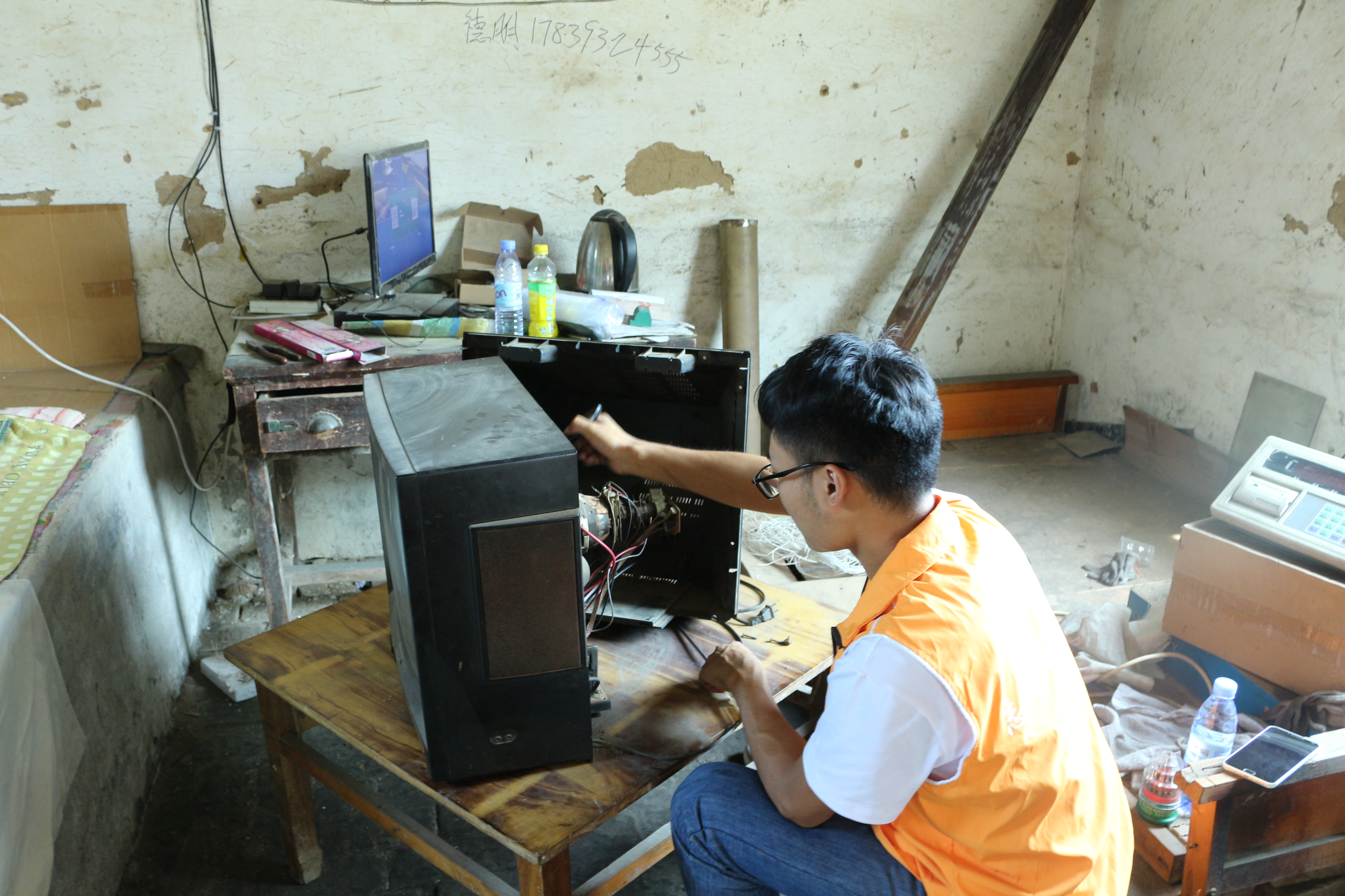 “家电义务维修小分队”利用其专业所长,为村民维修电风扇、电视机、台灯、饮水机、微波炉等家用电器。队员们看到村民们满意的笑容,感觉一天所有的付出都是值得的。