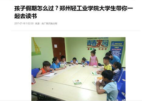 该服务队已被央广网河南分网报道(“孩子假期怎么过?郑州轻工业学院大学生带你一起去读书”:http://edu.dahe.cn/2017/07-19/108478798.html)
