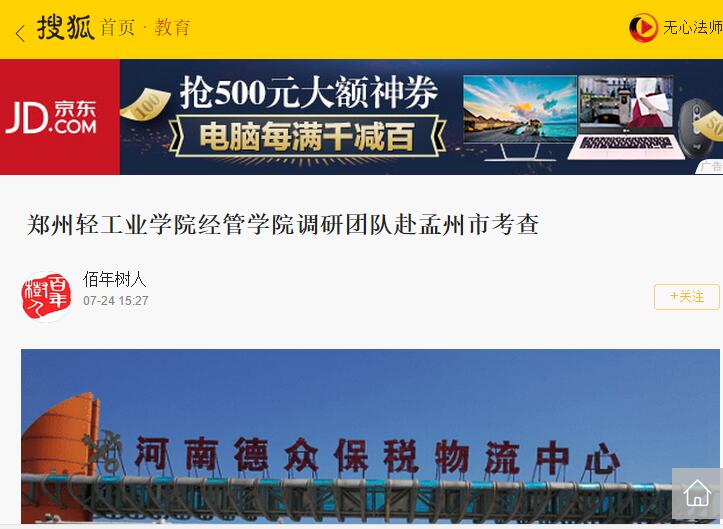 该团队已经被搜狐网教育频道所报道(郑州轻工业学院经管学院调研团队赴孟州市考查:http://m.sohu.com/a/159527609_135346/?pvid=000115_3w_a&from=singlemessage)