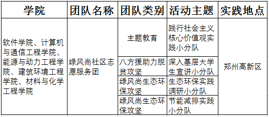 为深入学习宣传贯彻党的十八大和十八届三中、四中、五中、六中全会以及习近平总书记系列重要讲话精神,积极响应上级团组织号召,发挥专业特色,服务社会,助力精准扶贫工作,提高我校广大青年学生的社会实践能力和组织协调能,以实际行动喜迎党的十九大胜利召开,我校团委组织实施郑州轻工业学院“绿风尚”专项行动,其中包括生态环保实践调研团、“节能减排”实践团等共计4个团队、18支社会实践小分队,这些小分队自暑期社会实践活动启动以来,他们深入基层引导社会群众充分认识到节能减排低碳的重要性和紧迫性,营造节约能源、保护环境的良好氛围,为推进建设文明河南做出了贡献。