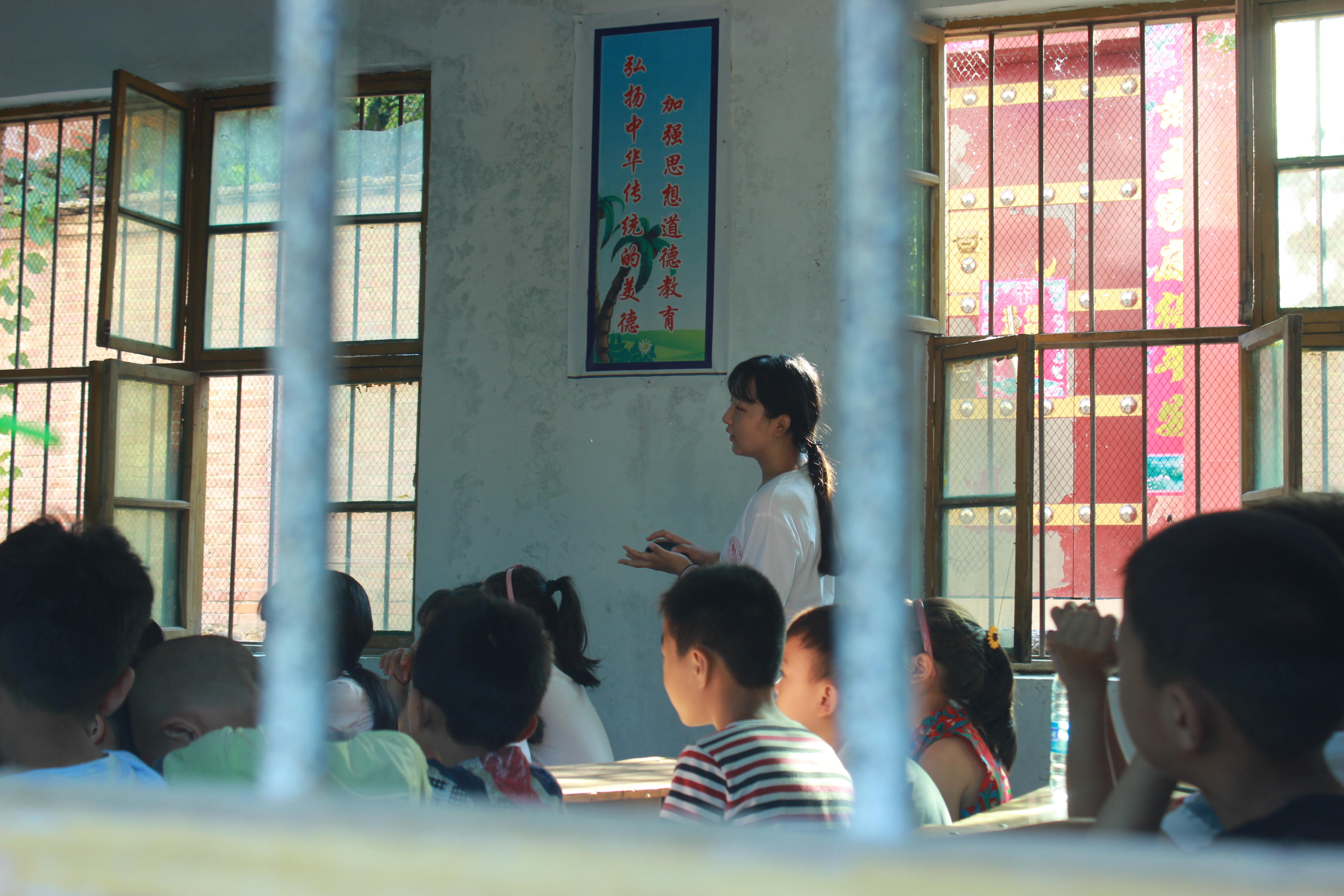 小分队成员们面对破败的钟铃、旗杆与桌椅,不禁捏了把汗,孩子们面对一张张陌生的苗孔一下子跑散,留给志愿者的只有藏在角落中那发光的眼神。小分队成员们觉得矫正这些留守孩子的心理问题,引导他们树立正确的价值观远比教给他们书本知识要来得更加迫切。孩子们面对着小分队成员们的自我介绍,渐渐熟悉起来,他们也都愿意接受小分队成员们带去的教育与才艺,此时此刻,小分队成员们的心沉了下来,仲夏酷暑中,萌生的是希望的种子。