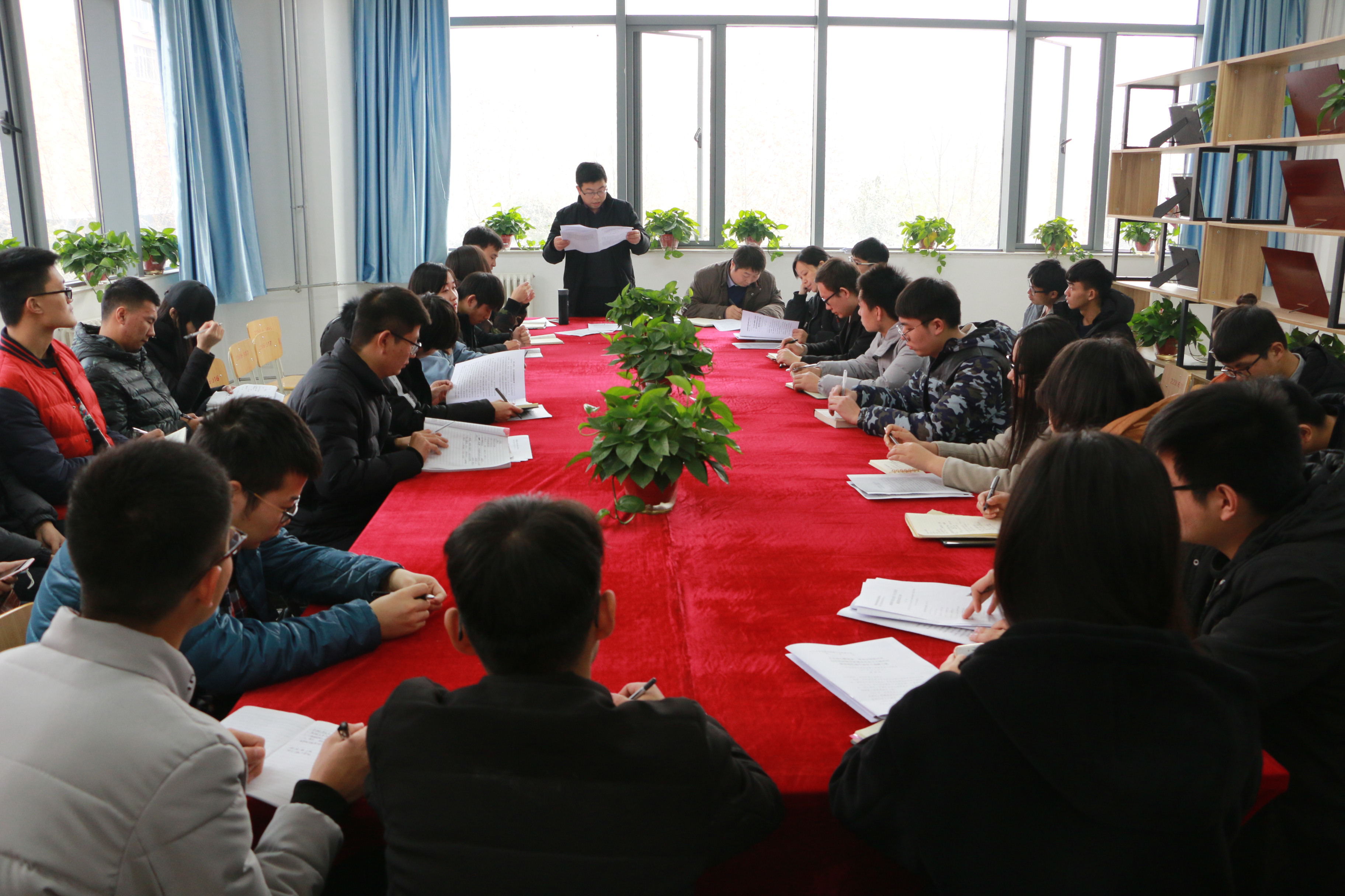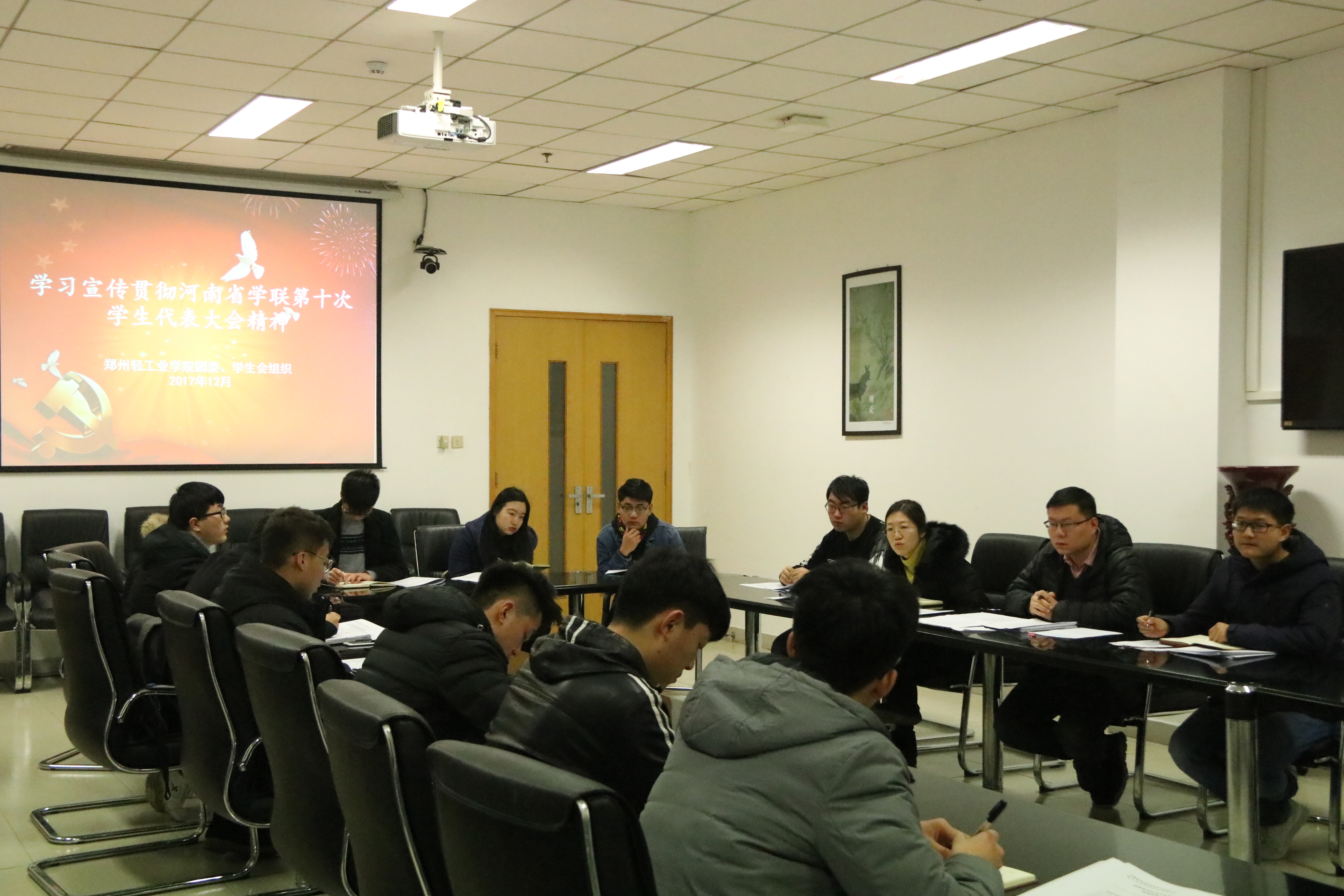 12月26日至28日,河南省青年联合会第十二届委员会全体会议、省学生联合会第十次代表大会在郑州召开。为深入学习、宣传、贯彻大会精神,进一步引领我校团学青年在新时代拓展新思路、寻找新方法、踏上新征程、开创新局面,我校团委于12月29日中午分别在东风校区图书馆第三会议室和科学校区工程训练楼青蜂工作室同时召开了学习宣传动员会,校六届团委委员、校九届学生会主席团成员、校学生部主要干部以及各二级学院普通学生代表参加了会议,会议分别由团委书记葛勋、副书记景志勇主持。