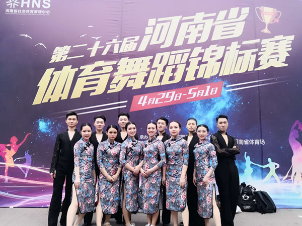 由河南省体育局社会体育管理中心主办的第二十六届河南省体育舞蹈锦标赛于5月1日晚在河南省体育场落下帷幕,我校艺术教育中心选派19名学生组队参加了大学生组的9个项目的比赛,经过两天紧张比赛,最终所有选手均进入决赛,共获得7个冠军、3个亚军、2个季军的好成绩,我校荣获“优秀组织奖”。