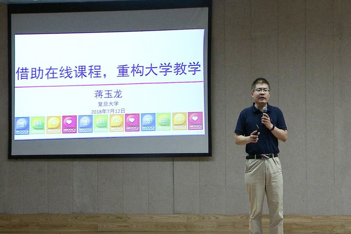 蒋玉龙教授在讲座中指出,有效借助在线课程,提升教学的效率和效果,实现课堂教学的翻转和教学质量的提升,是未来高等教育探索和实践的重要方向。蒋教授结合高校课堂教学的实际情况,与参会教师分享了快速建设在线课程和实现翻转课堂教学的宝贵经验,以及如何重构大学教学从而提升课堂的效率和教学质量的新方法,充分展示了新一代教学方式的魅力。蒋教授的报告内容丰富、案例鲜活、语言生动,激发了与会教师的极大兴趣,讲座结束后,主会场部分教师与蒋教授近距离进行了深入的交流,蒋教授耐心解答了老师们的提问。