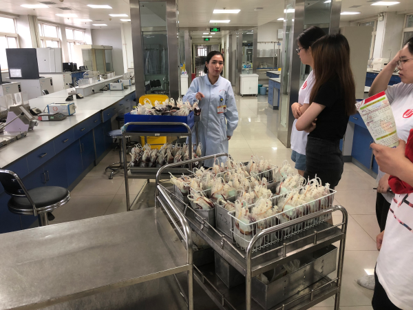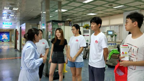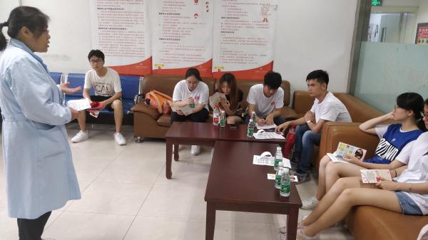 7月13日,志愿者们到达了河南省红十字会血液中心。进入大厅,由血站的老师带领大家参观了整个血液中心的大致分布和主要工作环境。随后,血站老师带领大家参观了血库并讲解了血液处理的步骤。其中一位老师还为志愿者们讲解了单采成分血复杂严密的后期处理过程。此外志愿者们还了解到了其他有关献血的知识,并在血站老师的带领下近距离的学习。